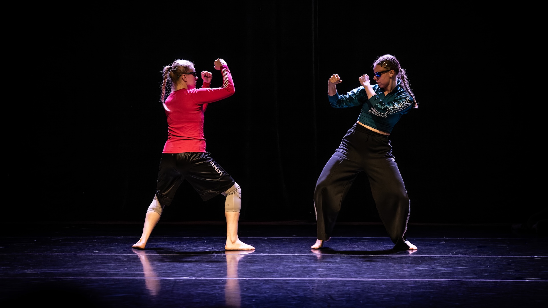 Maja Fock’s ACC explores adrenaline, excitement, and strength. Three characters meet in a world inspired by action films, boxing, anime, and manga. By blending dance with pop culture, the work creates an energetic experience that bridges generations. On stage are dancers Maja Fock, Anna-Greta Himmer and Naima Stenberg. The performance is made in collaboration with Producentbyrån and Mölnlycke Kulturhus.