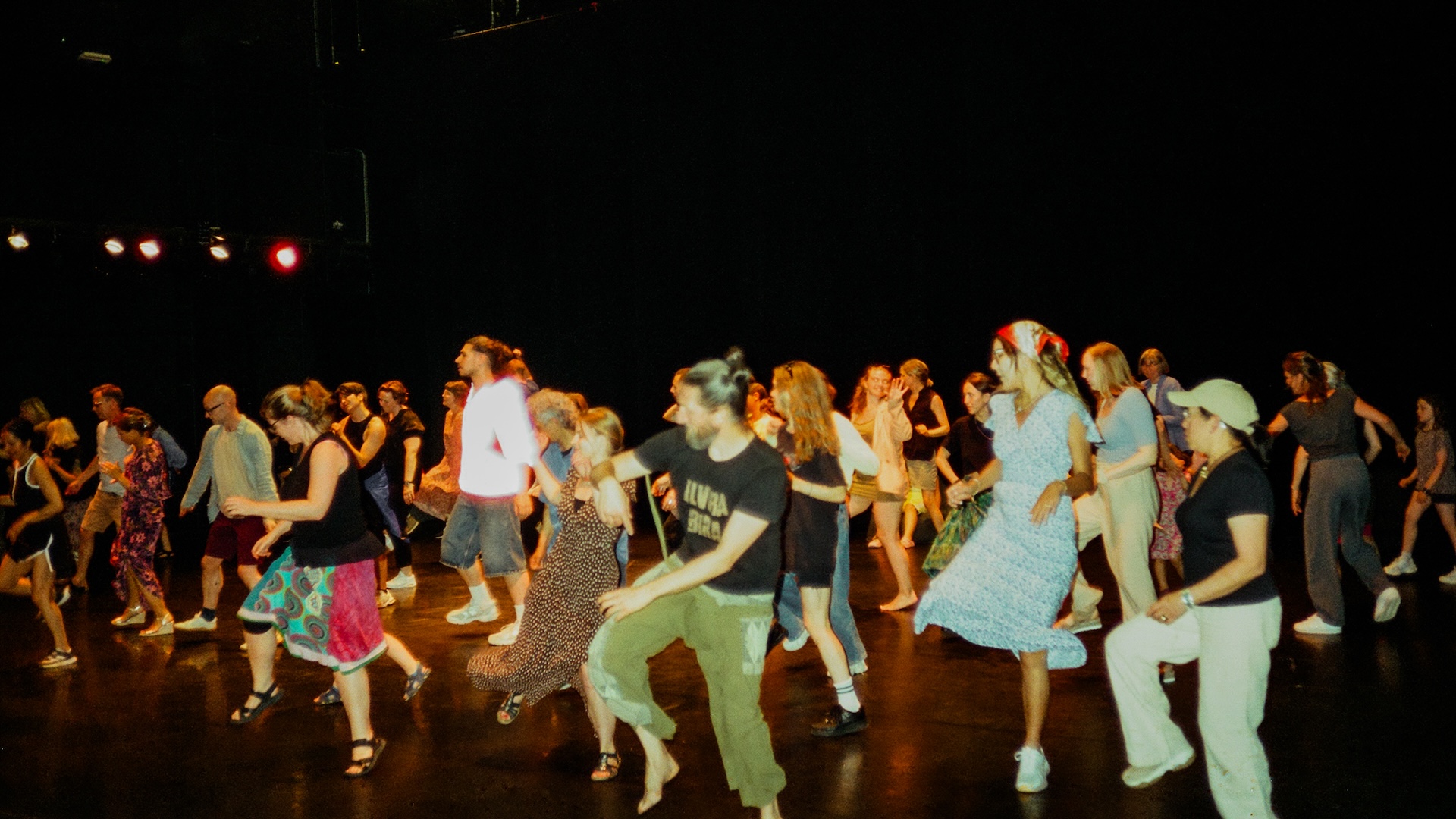 The starting point lies in one of our oldest social rituals: dancing together, rhythmically, over an extended period of time. Throughout history, dance has built energy, healed wounds, created belonging, celebrated life, and generated strength. Here, the timeless line dance The Electric Slide becomes a collective practice. Some of Malmö’s finest dancers move in a continuous loop to house music in a warm and intimate setting. The pulse never breaks, the rhythm is constant, and the space vibrates with life. The audience is invited to join on their own terms – sit, stand, lie down, or dance along. Boundaries dissolve, and a shared space emerges where differences meet through the language of the body.